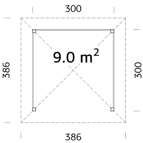 Paviljongen rekommenderas att vara placerad på ett fundament som är nedgrävt till frostfritt djup ex. egen gjutning eller på nedgrävda plintar.