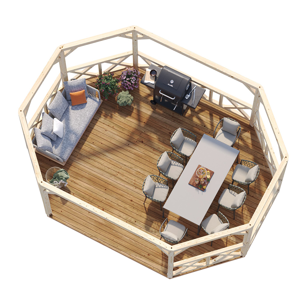 Golv finns att köpa till separat till storlekarna 9,0 och 9,9 m². Vid tillval av golv: Golv + golvreglar är impregnerade.