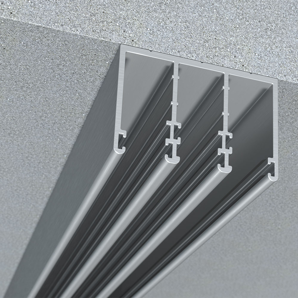 Väggprofilen är designad för en enkel och nästintill osynlig fastskruvning och ger en säker och stabil parkering av glasdörrarna. De glider stabilt och exakt in i väggprofilen där de sedan sitter stabilt.
