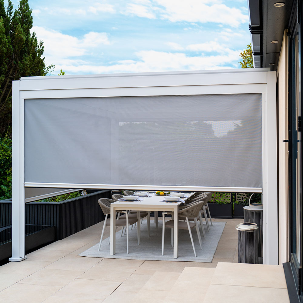Det perfekta tillbehöret till din aluminiumpergola när du vill njuta i skuggan eller söka skydd mot vinden. De ger även en känsla av ett rum och kan förlänga säsongen.