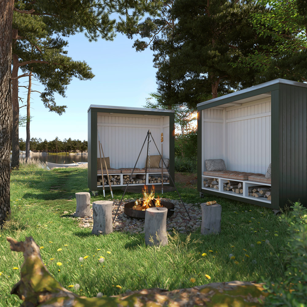 Siesta vindskydd levereras komplett med hjul, beslag och takpapp – redo att anpassas efter din stil och dina behov.
