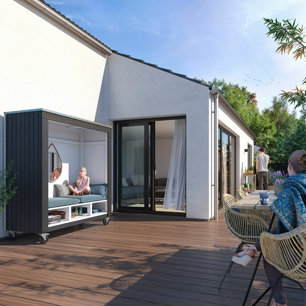Med Siesta vindskydd på hjul finns det inga gränser för hur du kan skapa ditt eget lilla frirum i trädgården. Inred med ljusslingor, kuddar och madrasser – eller gör det till en mysig uteplats för fika och vila.