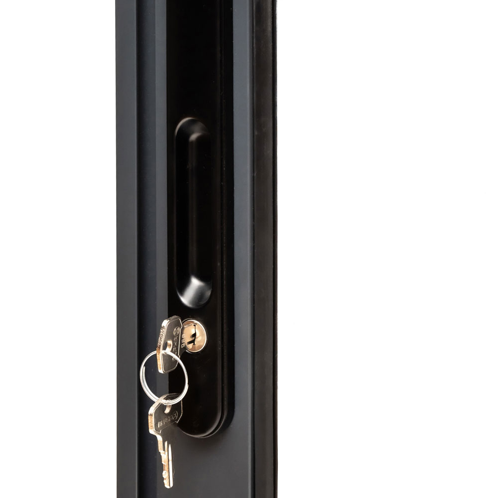 | Dörrtyp | Skjutdörr i aluminium med 4 mm härdat dubbelglas |