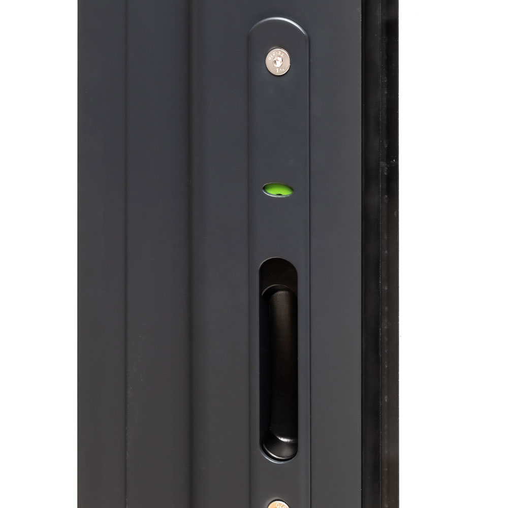 | Dörrtyp | Skjutdörr i aluminium med 24 mm härdat dubbelglas |