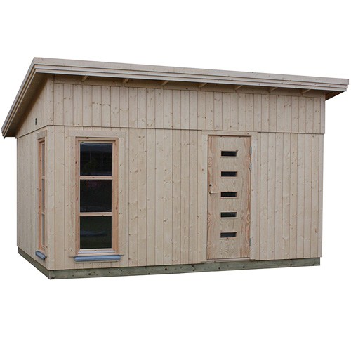 Stugan är obehandlad och måste grundoljas, grund- och täckmålas innan användning. Observera att även dörren är obehandlad. Levereras i byggsatser som du själv monterar med hjälp av utförliga monteringsanvisningar.