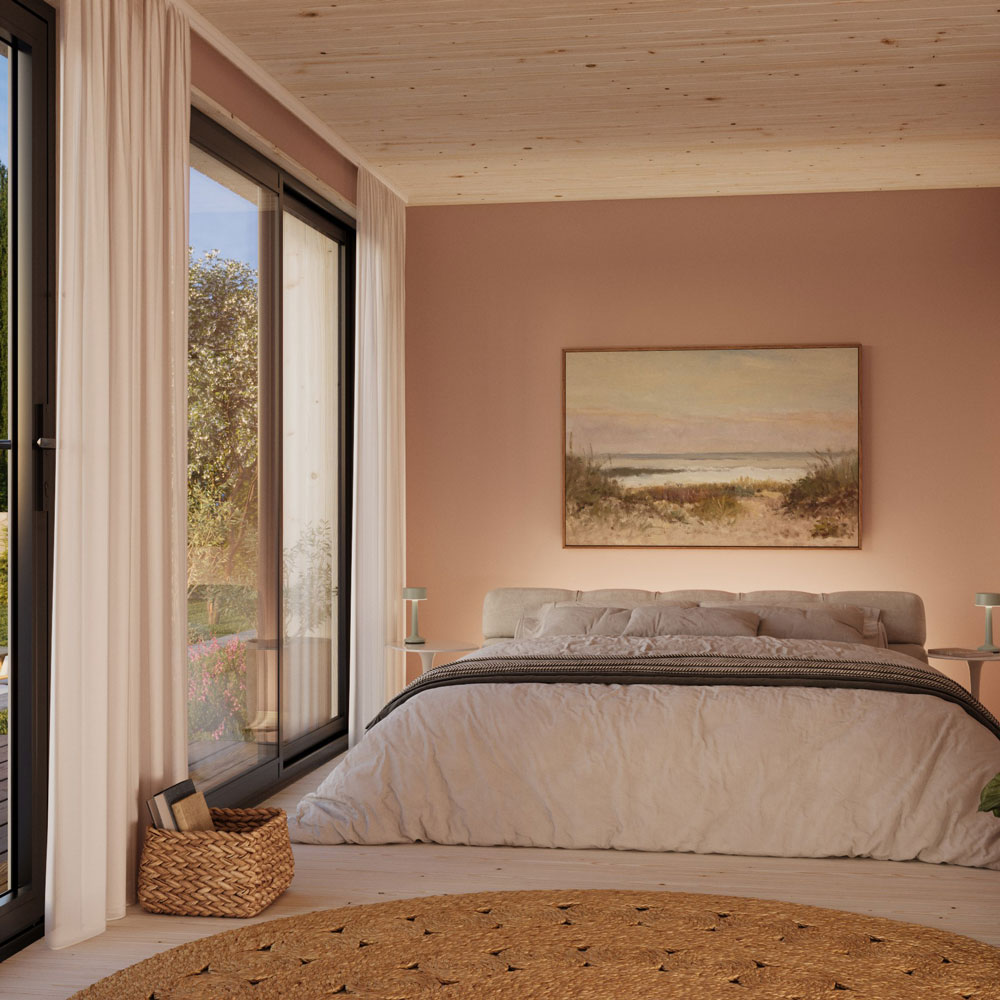 Johanna 19 m² är en modern och smart planerad trädgårdsstuga med stora glaspartier och en ren, rak form. Den passar dig som vill ha ett extra rum i trädgården för arbete, umgänge eller hobby – utan att ta för mycket plats och med en totalhöjd strax under 3 meter.