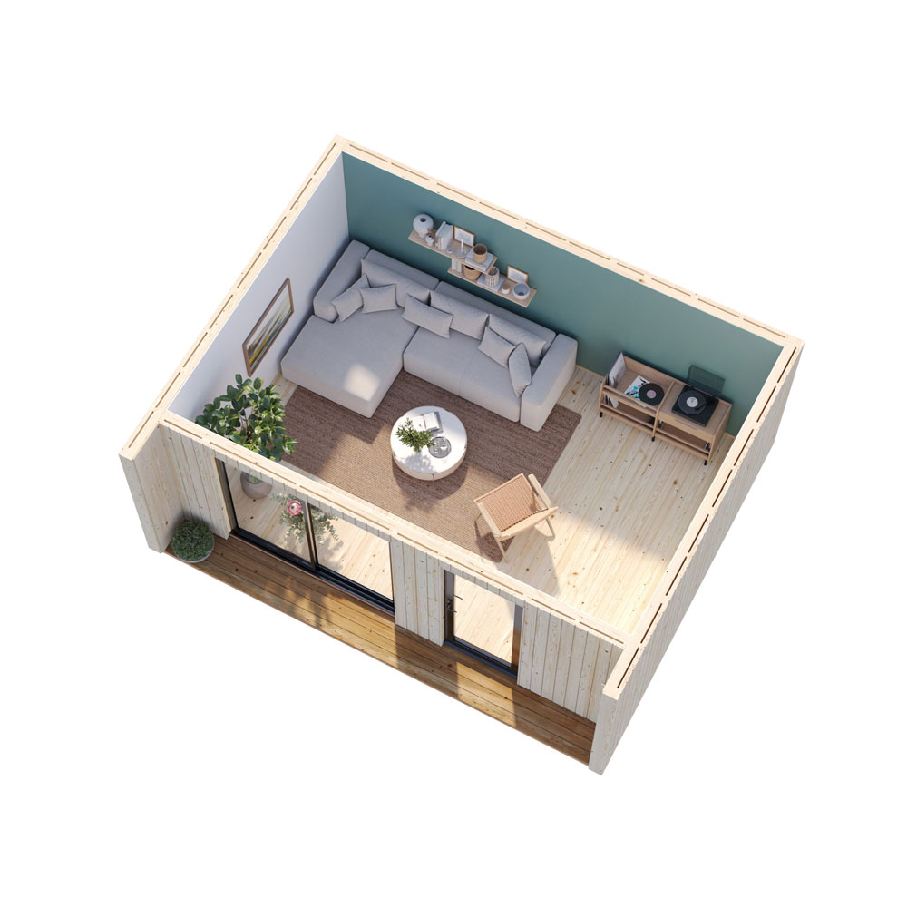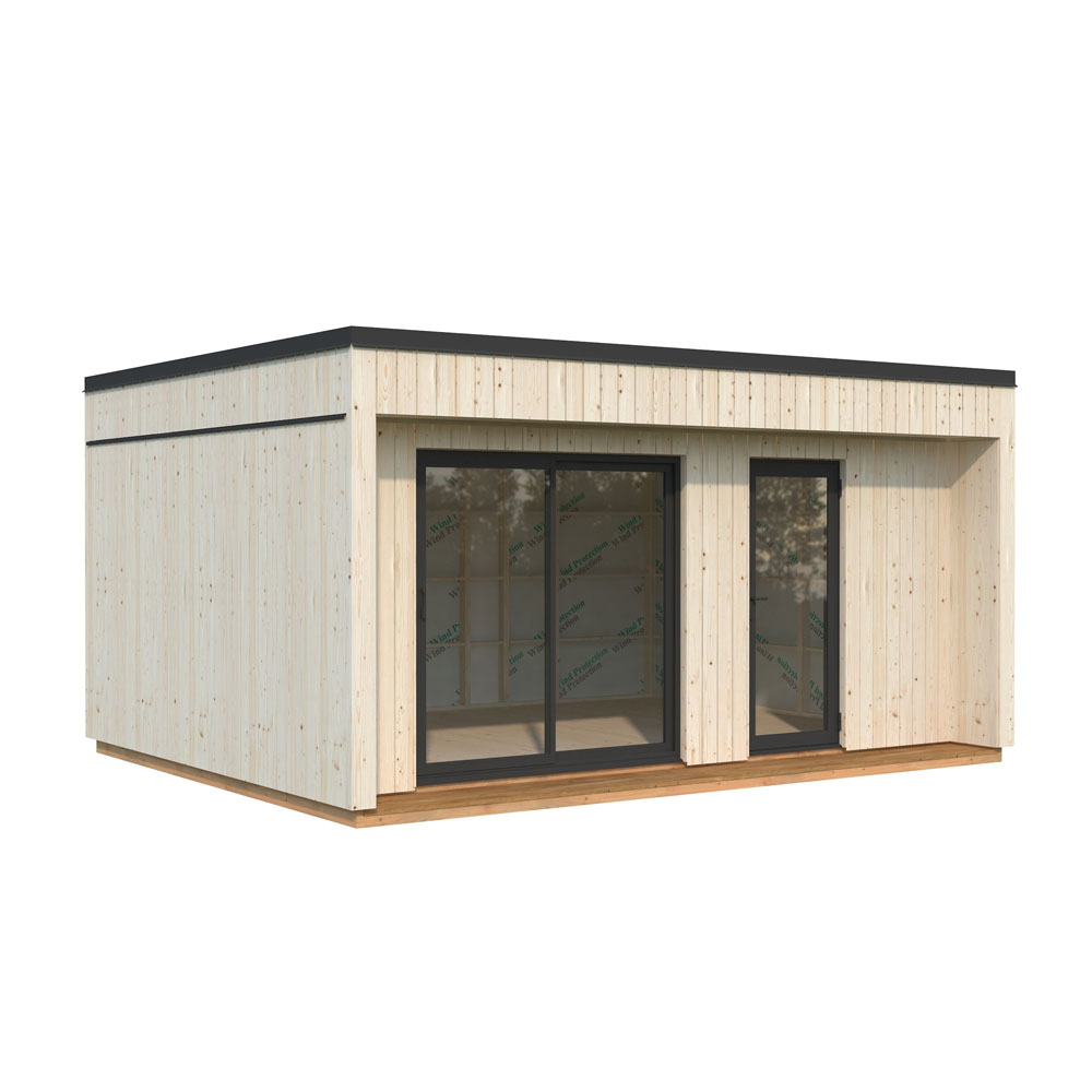 Johanna 25,2 m² är en rymlig och modern trädgårdsstuga med stora glaspartier, höga väggar och en stilren form som passar i både klassiska och moderna trädgårdar. Den generösa takhöjden och de stora dörrsektionerna skapar en ljus och luftig interiör, perfekt som hemmakontor, ateljé, gästrum eller ett extra vardagsrum i trädgården.
