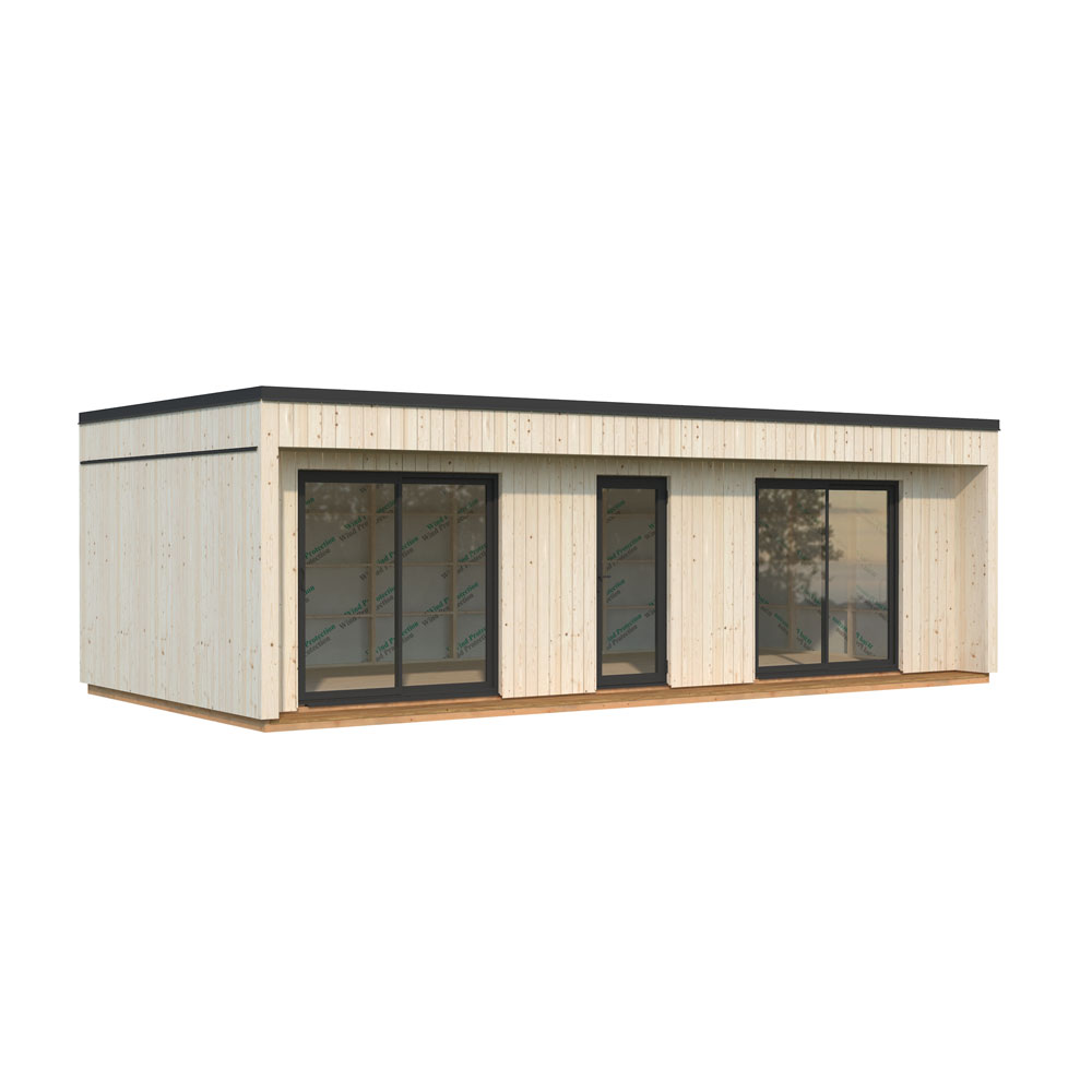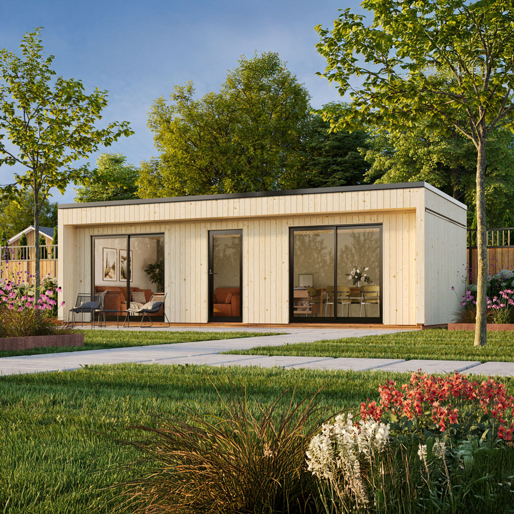 Johanna 41 m² är den största modellen i serien och erbjuder ett generöst, ljust och flexibelt utrymme för dig som vill skapa ett gästrum, ateljé, hemmakontor eller ett modernt trädgårdsrum med riktigt gott om plats. De höga väggarna och stora glasytorna ger en luftig och öppen känsla, samtidigt som den robusta konstruktionen säkerställer lång livslängd.