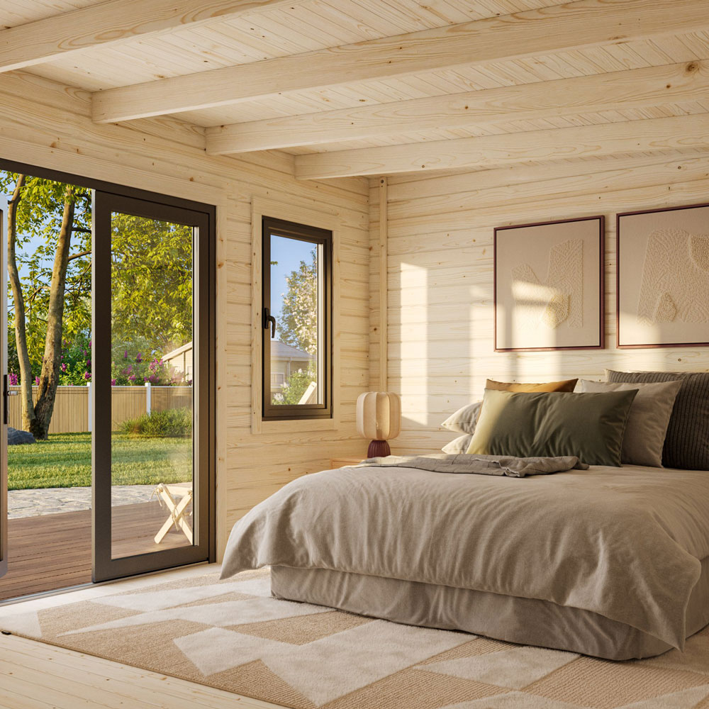 Lisandra 14,9 m² är ett ljust och modernt trädgårdshus med stora glasytor och en ren, stilren profil. Den kompakta planlösningen gör modellen perfekt som kontor, hobbyrum, gästrum eller ett extra rum på tomten. Den smarta konstruktionen i 44 mm nordisk gran ger stabilitet och lång hållbarhet.