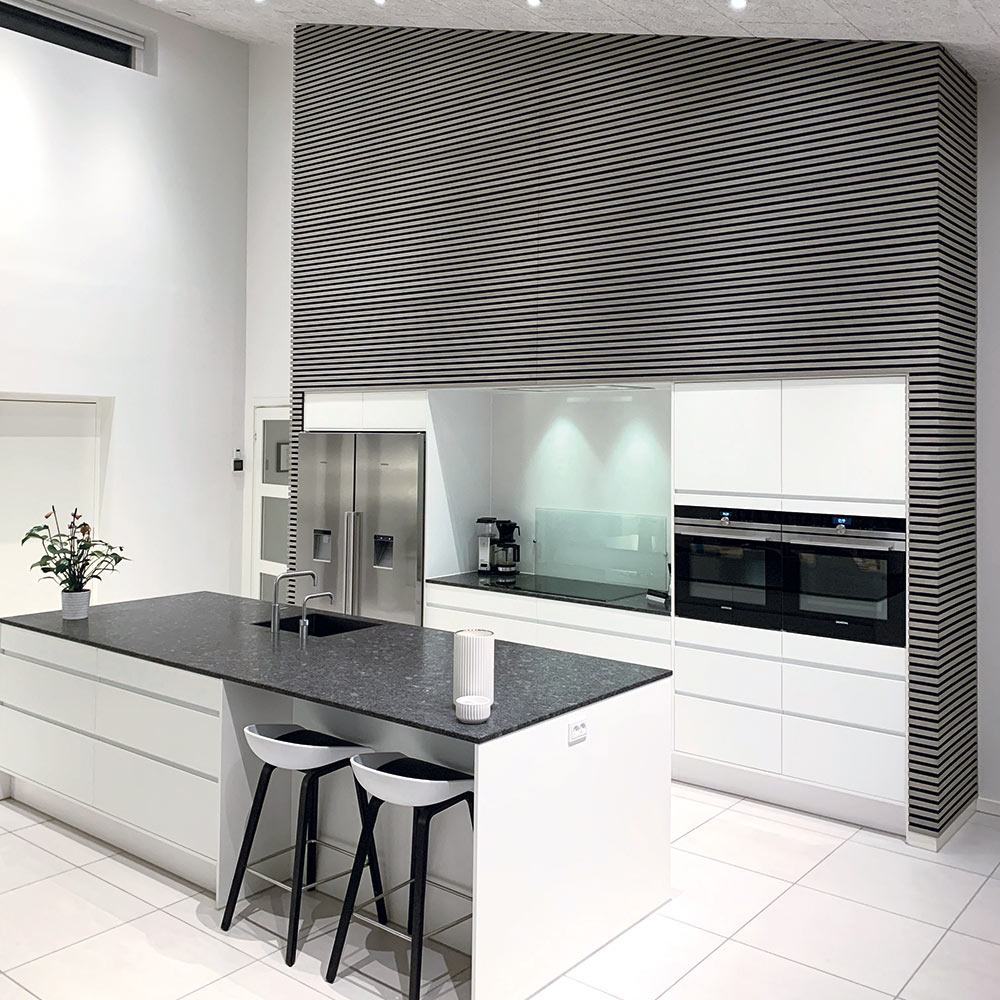 Dessa ribbpaneler ger inte bara ditt hem ett fantastiskt utseende utan de har även en annan väldigt viktig uppgift, nämligen dämpning av akustiken. De ger rummet en behaglig och trivsam miljö med sin ljudabsorberande funktion.