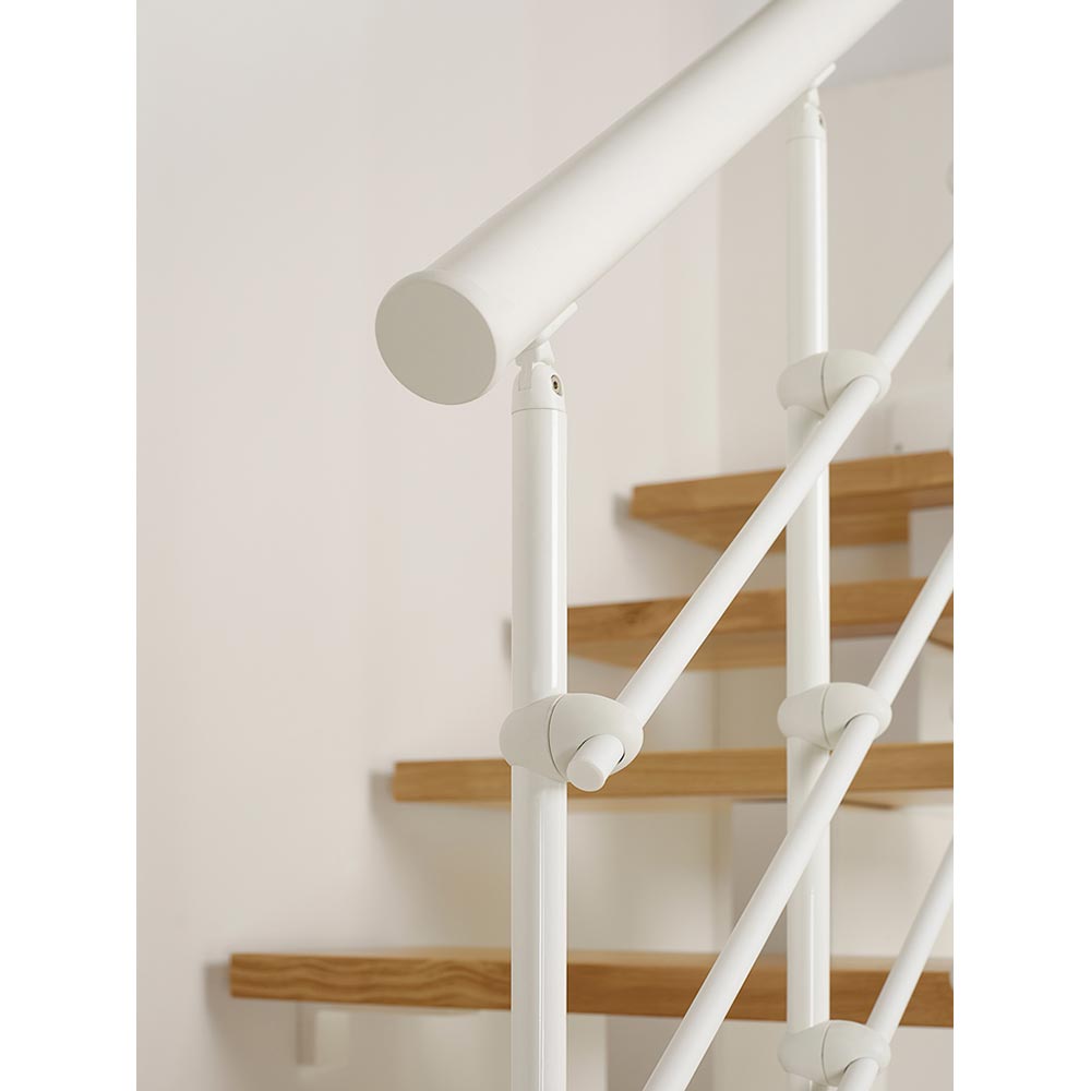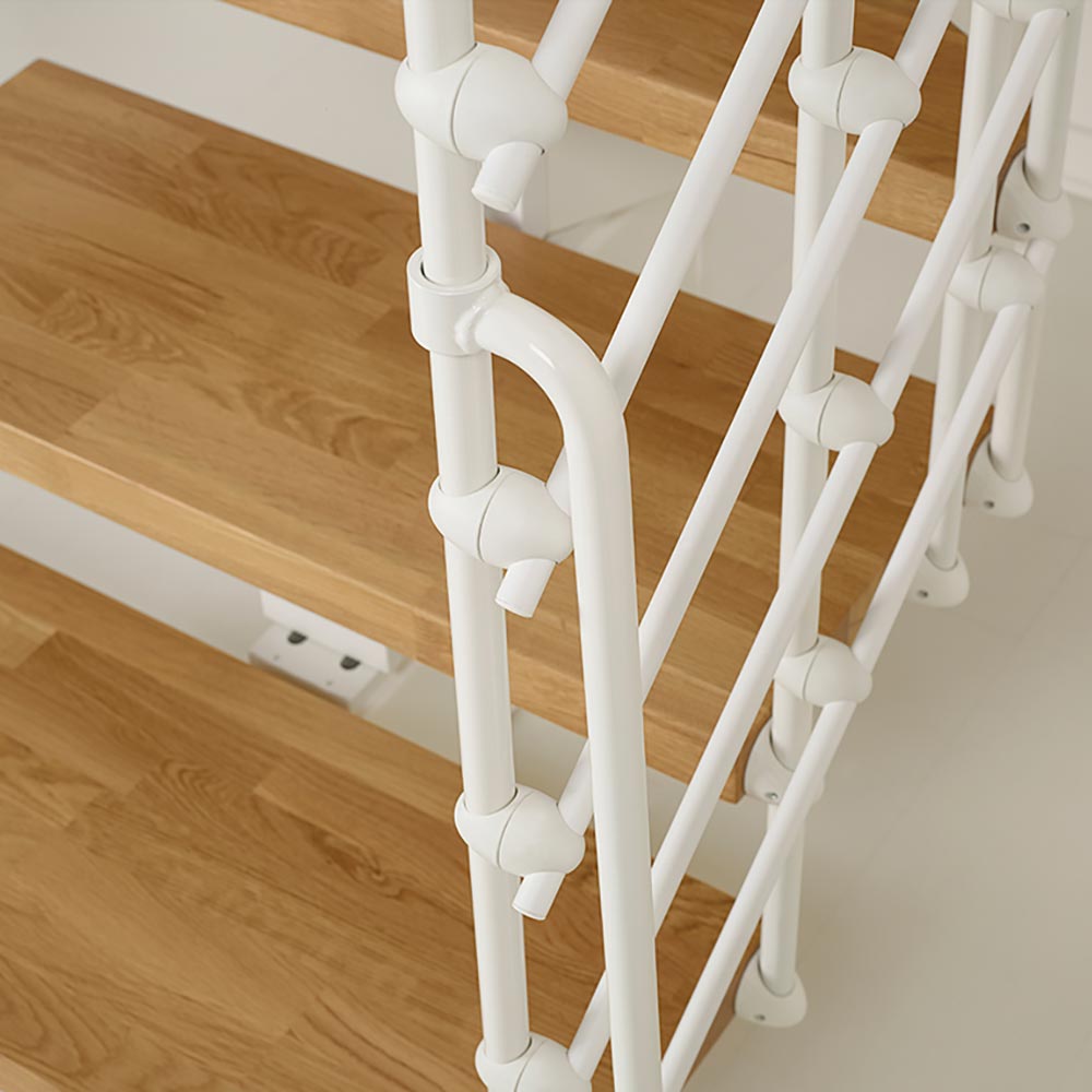 Oak 90 är en smidig spiraltrappa som passar till en mängd olika hål då den kan vara både rak, L-formad eller U-formad. Allt för att den ska gå att anpassa specifikt för ditt utrymme! Se produktbladet för att välja mellan alla de olika utformningar som finns.