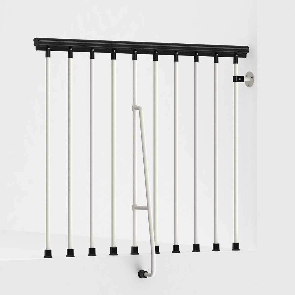 Balustrad som går att välja till för din trappa av modellen SKY 030. Det skyddar öppningen på ovanvåningen.