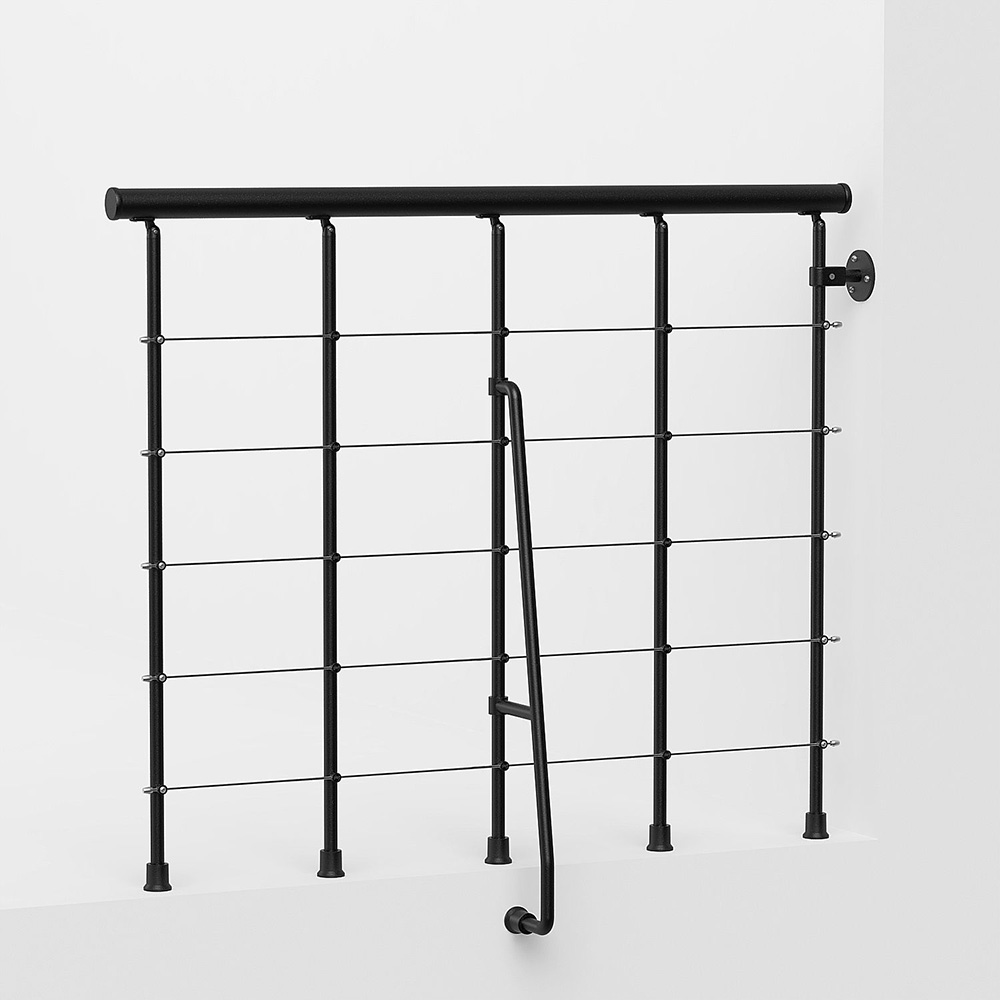 Balustrad som går att välja till för din trappa med beteckning 010 A ur serien Spin. Det skyddar öppningen på ovanvåningen.