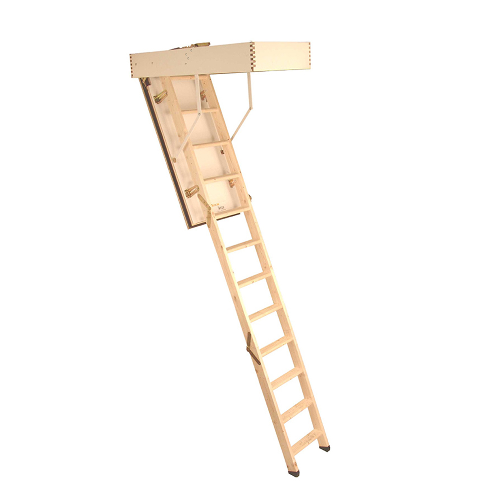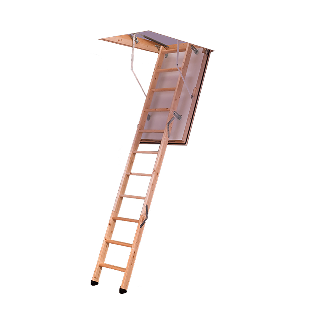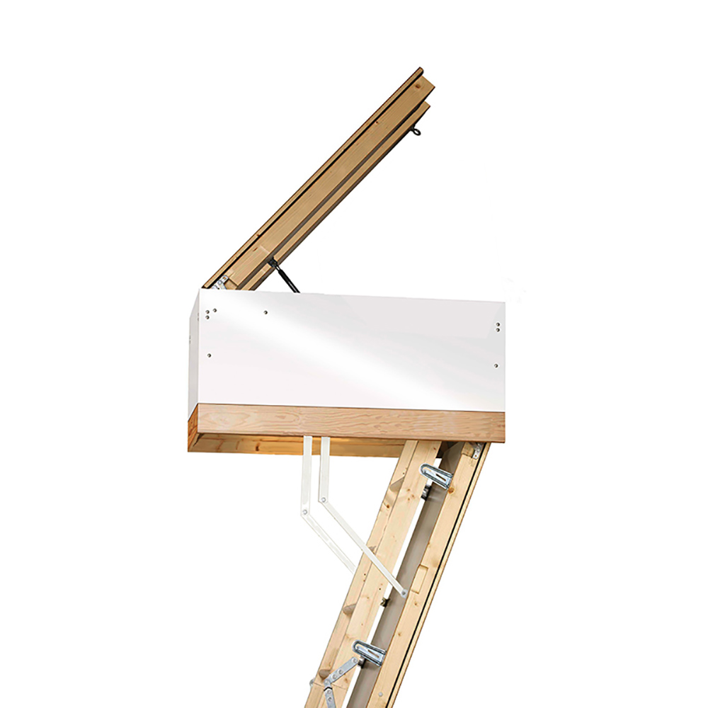 Denna praktiska trappa gör att du kan utnyttja vindens förvaringsutrymme till max. Den viks enkelt ihop i fyra sektioner på luckans insida och tar därför mycket liten plats.