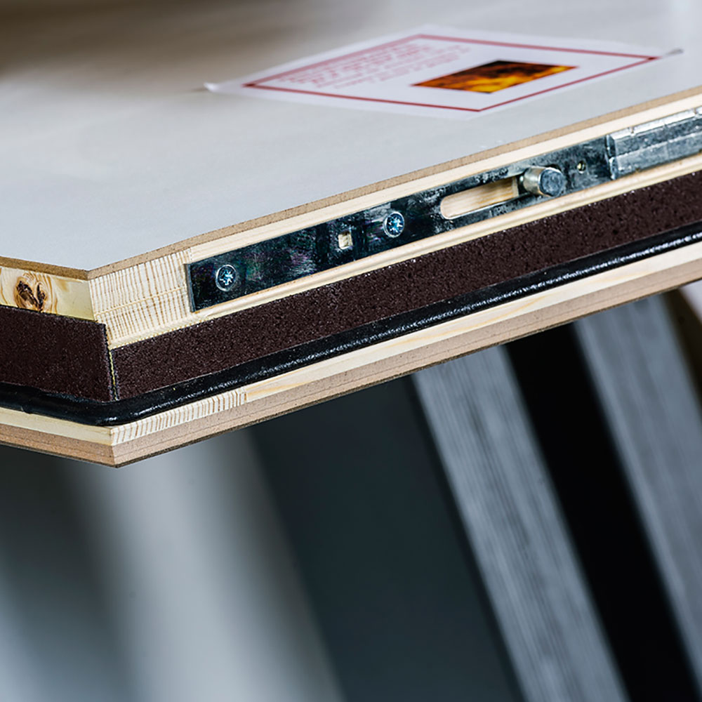Trappan är enkel och säker att öppna och har en karm med 2 utjämningsfjädrar samt en lucka med spanjolettlås. Den levereras färdigmonterad och är tillverkad av material i högsta kvalitet. På luckans in- och utsida är det en vit hdf-board som är grundmålad. I luckan finns det 50 mm isolering vilket ger ett U-värde på 0,67 W/m2°C. För att ge ett extra skydd mot ditt golv har stegen plastfötter.