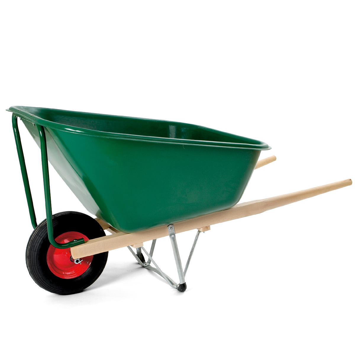 Plastkorgen gör att kärran blir lätt och den rostar inte. Kärrans träskalmar ger maximal stabilitet och balans och därigenom också en ergonomisk riktig körställning.