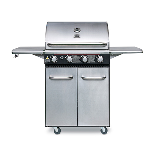 Grillen har fyra rostfria brännare med en total effekt på 14 kW. Den rejäla grillytan sträcker sig över hela.