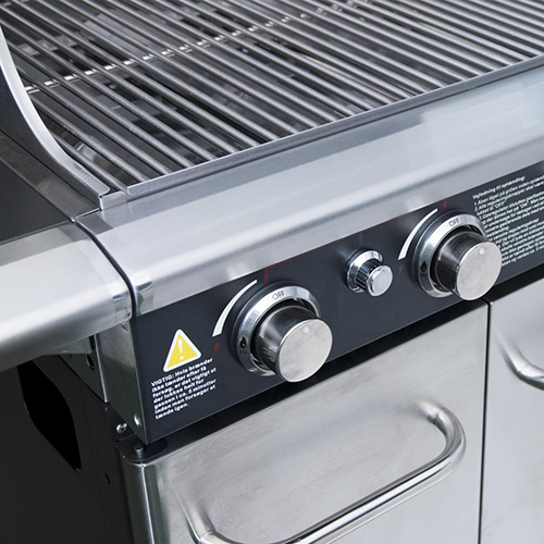 Inred uteplatsen eller altanen med en snygg gasolgrill. Den rostfria designen ger ett modernt och stilrent uttryck.