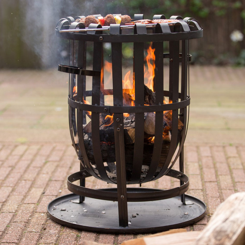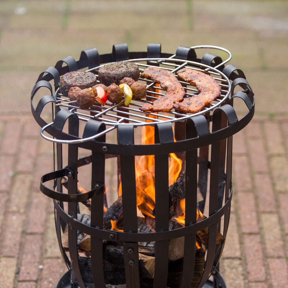 Skapa mysig stämning i trädgården med en eldkorg som också kan användas som grill. Eldkorgen är lätt att förflytta med hjälp av de integrerade handtagen. Tillverkad i 2 mm tjockt stål med pulverlackerad finish i svart.