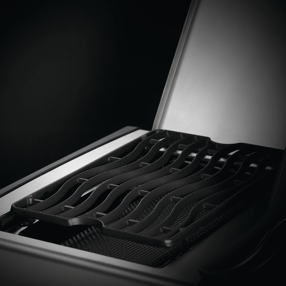 Drömmen om det perfekta grillmönstret uppfylls med det porslins-emaljerade grillgallret av gjutjärn. Det vågformade WAVE-gallret är utvecklat för att ge en jämnare värme och gör det svårare för små bitar att falla igenom. Den tillförlitliga värmetermometern är inbäddad i locket och mäter noggrant innetemperaturen för optimal temperaturreglering när du grillar.