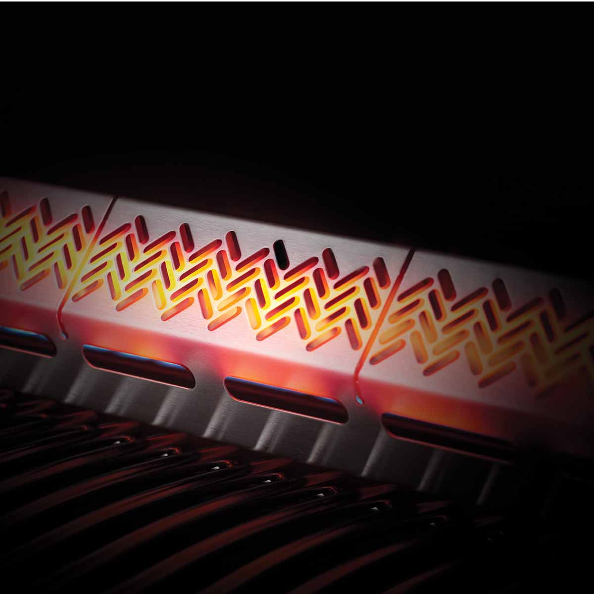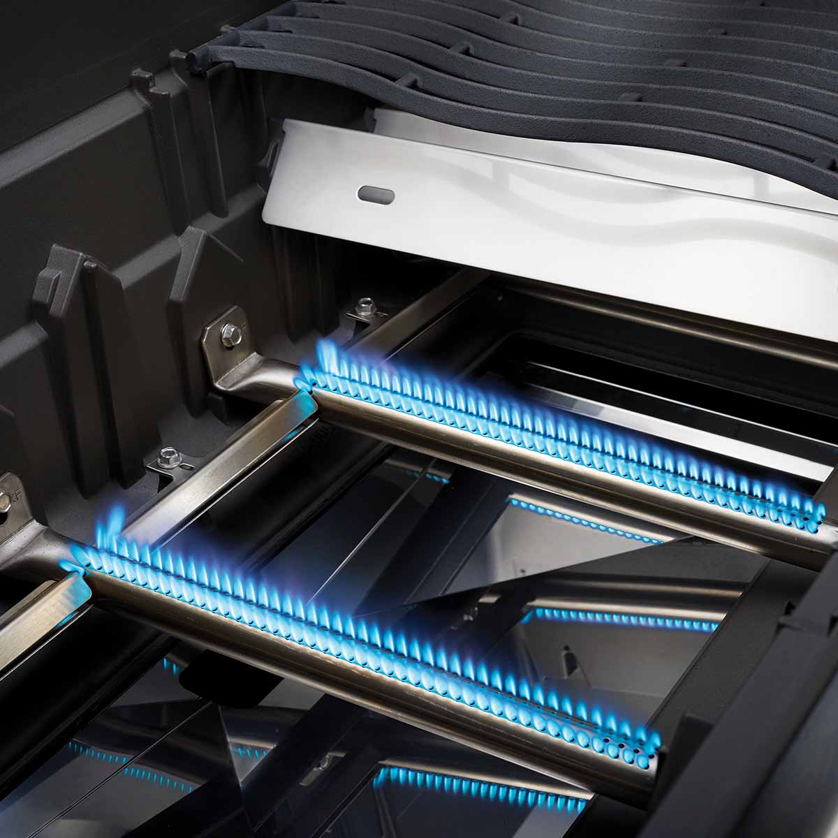 Rogue SE 625 har sammanlagt 7 stycken brännare. Fem högkvalitativa bottenbrännarna i rostfritt stål som har en total effekt på 20,75 kW och är inbäddade i det robusta brännarhuset i gjutet aluminium. Det unika värmefördelningssystemet gör denna grill oumbärlig för nästa grillfest. Med sidobrännaren SIZZLE ZONE förbereder du grillade wokrätter och biffar med lätthet. Den infraröda sidobrännaren når snabbt upp till 800 °C och garanterar en perfekt yta på köttet. Till sist finns en bakre brännare för bland annat rotisseri. Gasoltuben förvarar du i det praktiska underskåpet och verktygen har du alltid nära till hands på respektive sida.