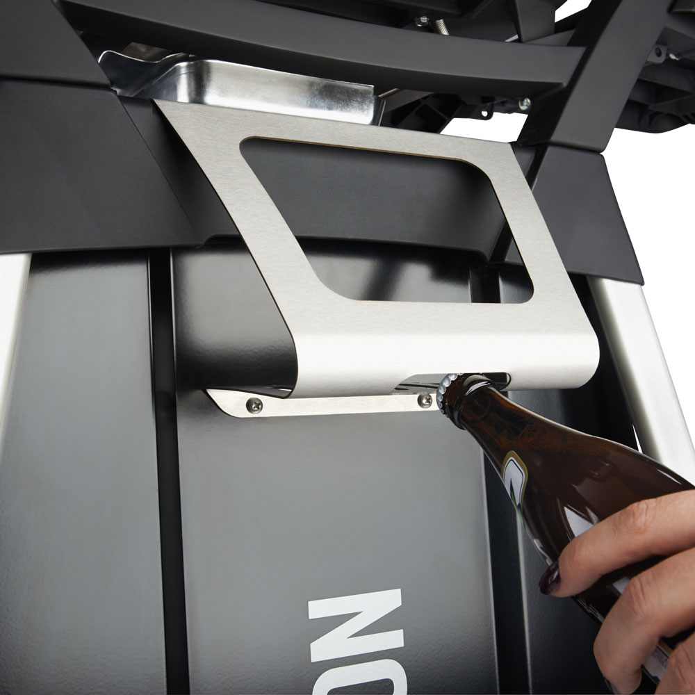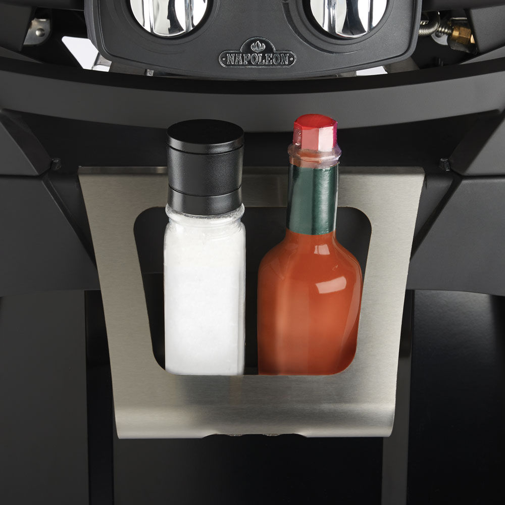 Du får ett stativ i rostfritt stål, integrerad flasköppnare och hylla för gasolflaskan. De robusta, avtagbara sidohyllor har extra förvaring för verktyg och handdukar och ger dig bra avlastningsytor. Hjulen är anpassade för att klara alla säsongen utan problem.