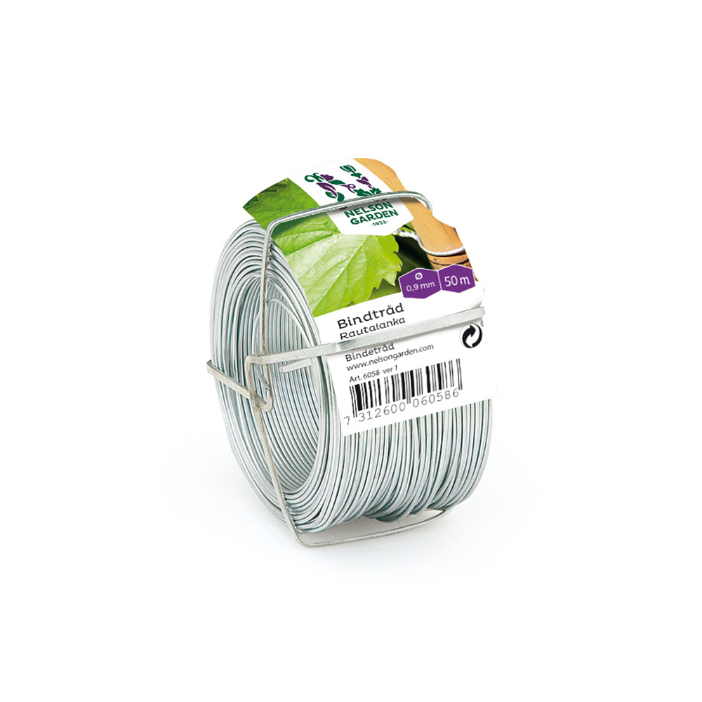 Galvaniserad ståltråd som har diametern 0,9 mm och längd 50 m.