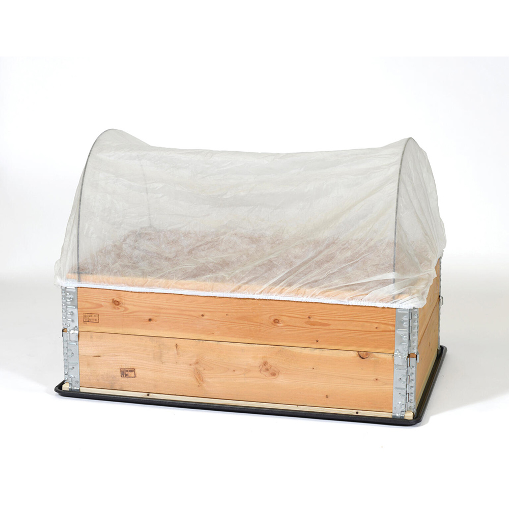 Denna fina odlingsduk har en praktisk resår och är anpassad för en pallkrage med måtten 120x80 cm som försetts med pallkragebågar.
