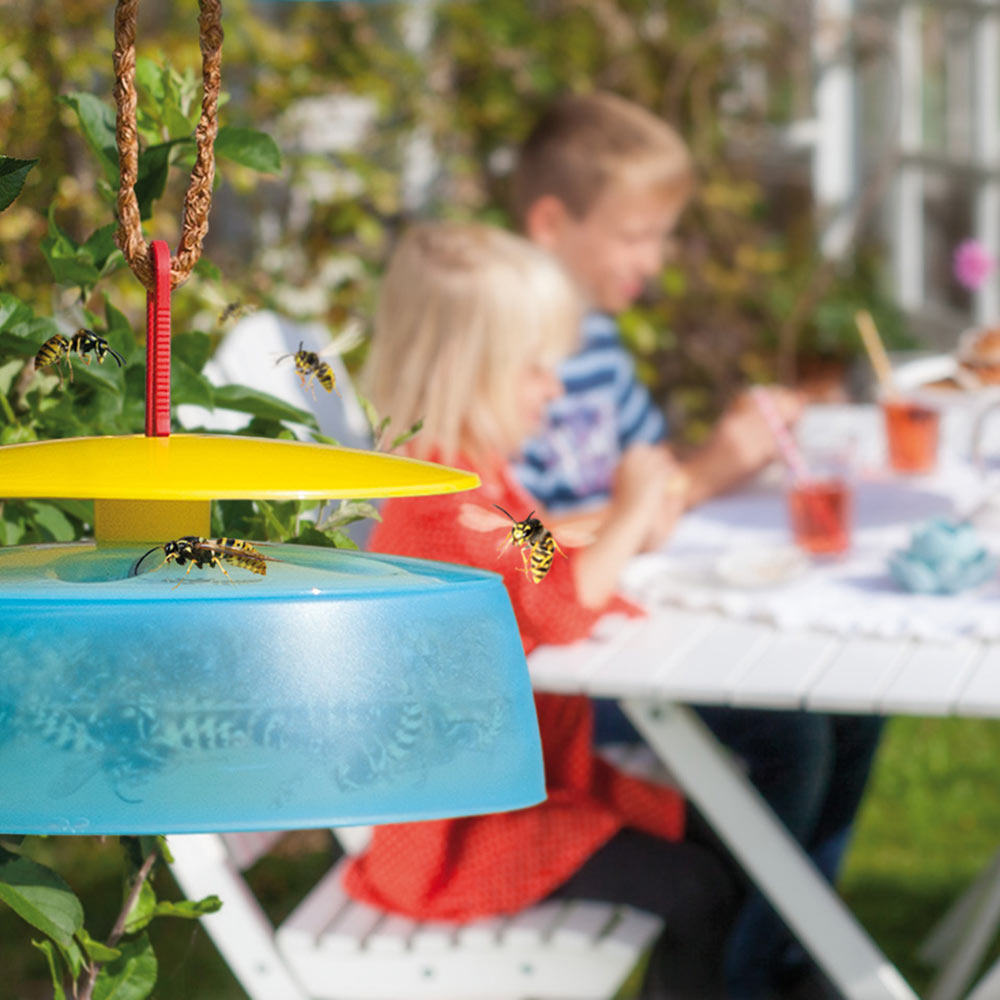 Det är först på sensommaren när getingarna behöver mer ren energi och söker sig till våra sötsaker som de kan bli ett problem. Då kan denna fälla hjälpa dig att ta hand om problemet.