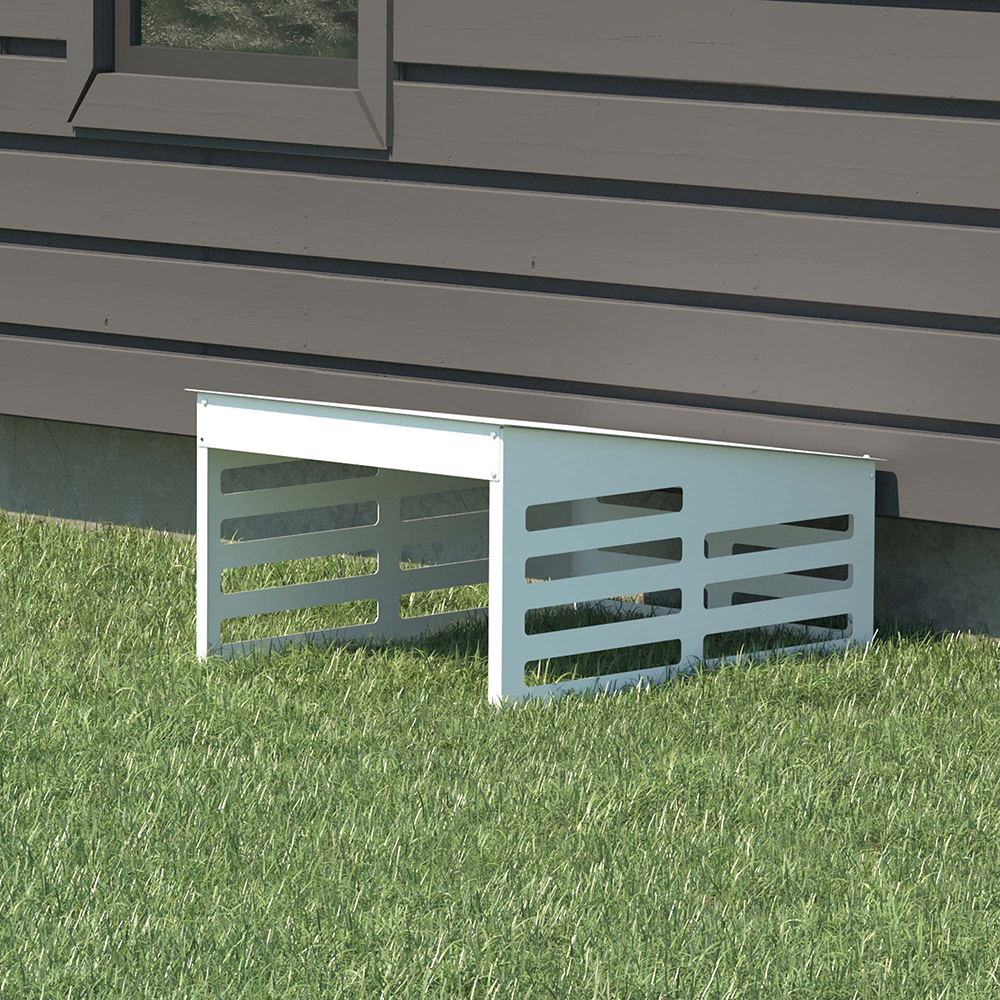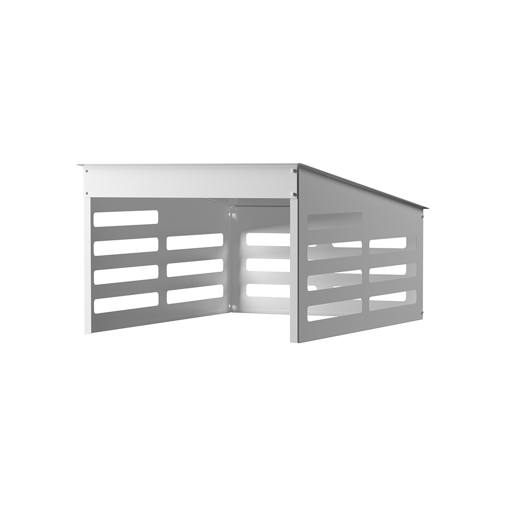 Skyddet är gjort av galvaniserad plåt som pulverlackerats i en vit kulör.
