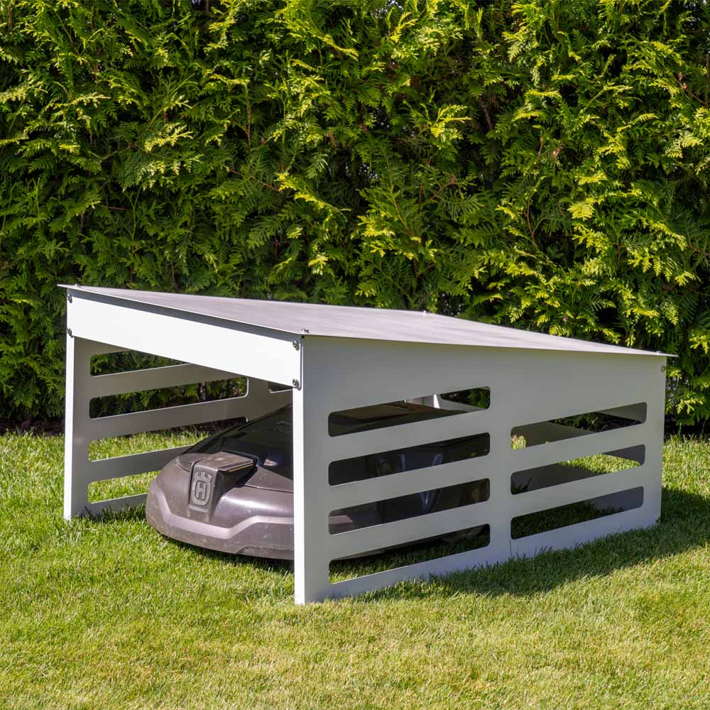 Skydda din robotgräsklippare mot regn och sol med hjälp av detta stilrena garage.