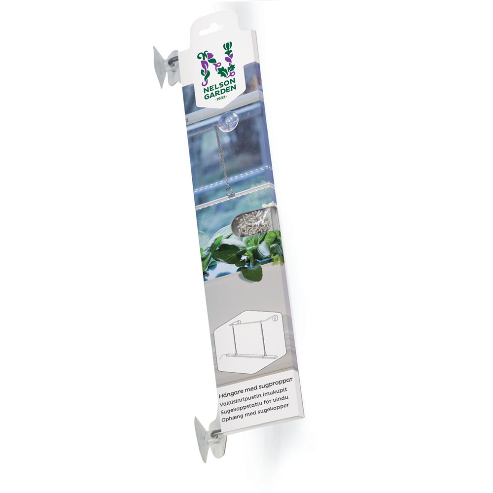 Hängaren fästs smidigt med sugproppar på fönsterrutan i köket, kaklen i badrummet eller på glaset i ditt växthus.
