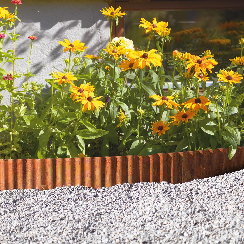 Låt inte gräset sprida sig in i dina nya, fina rabatter. Placera kantskyddet mellan dem för att hålla ordning och reda. Skyddet går att böja så att det passar för både raka och rundade former i din trädgård.