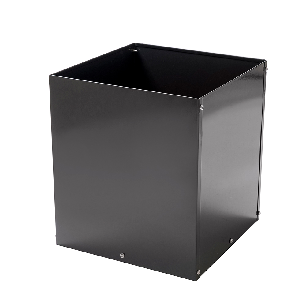 Modern kruka i stål med förborrade dräneringshål i botten som förhindrar att växterna får stå i vatten. Krukan har en vacker antracitgrå nyans och metallen är förgalvaniserad för att skydda produkten från att börja rosta. Lackeringen bildar ett skyddande lager som ger en bestående produkt flera år framåt.