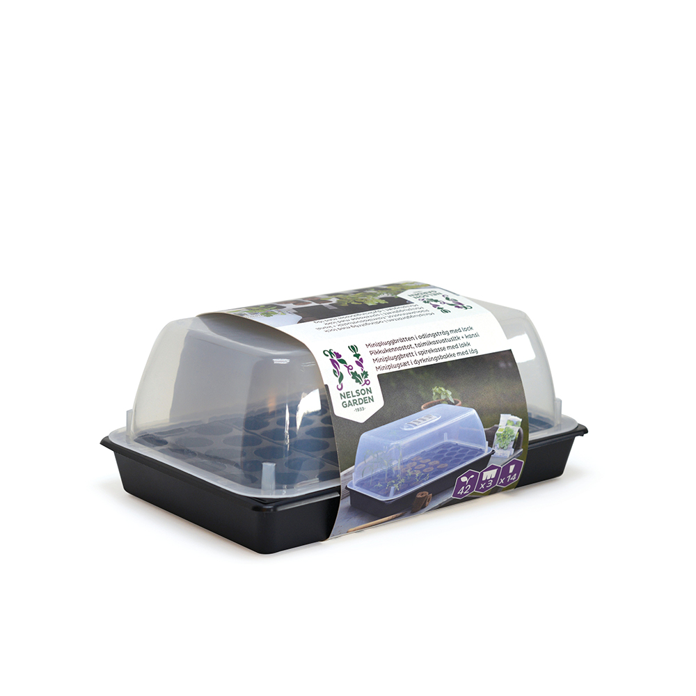 Odlingstråg med lock och minipluggbrätten för jord eller odlingspluggar. Förenklar din sådd, förodling och omplantering. Det medföljer även 14 stycken odlingspluggar av komposterbar kokosfiber, torv och näring, allt för att göra dina odlingar ännu smidigare och roligare.