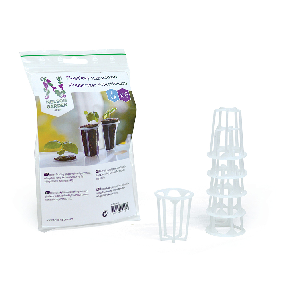 Detta är en refill-produkt till den hydroponiska odlingslådan Harvy. Korgarna används som hållare för odlingspluggarna och kan återanvändas vid flera tillfällen.