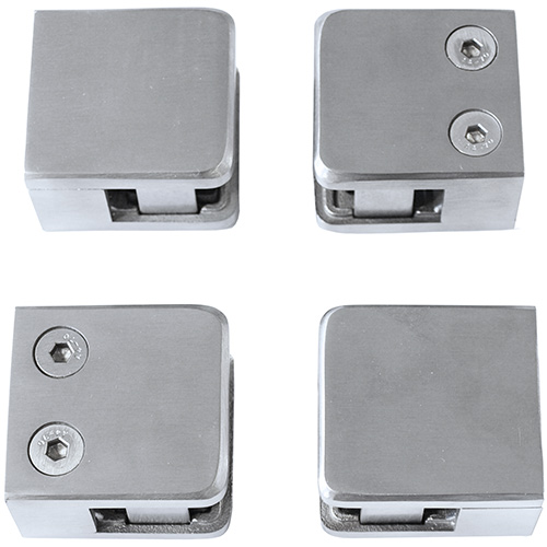 Dessa beslag används för att fästa en glasskiva i en trästolpe.