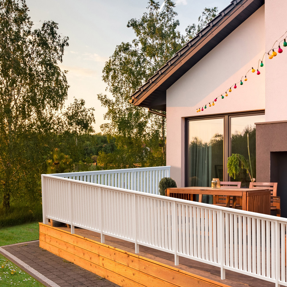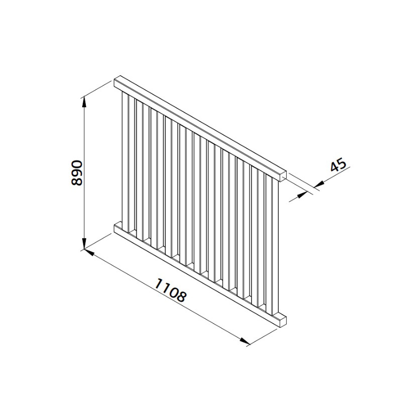 Räcke i nordisk gran med klassiska spjälor. Du får ett stabilt och tidlöst räcke runt altan eller balkong.