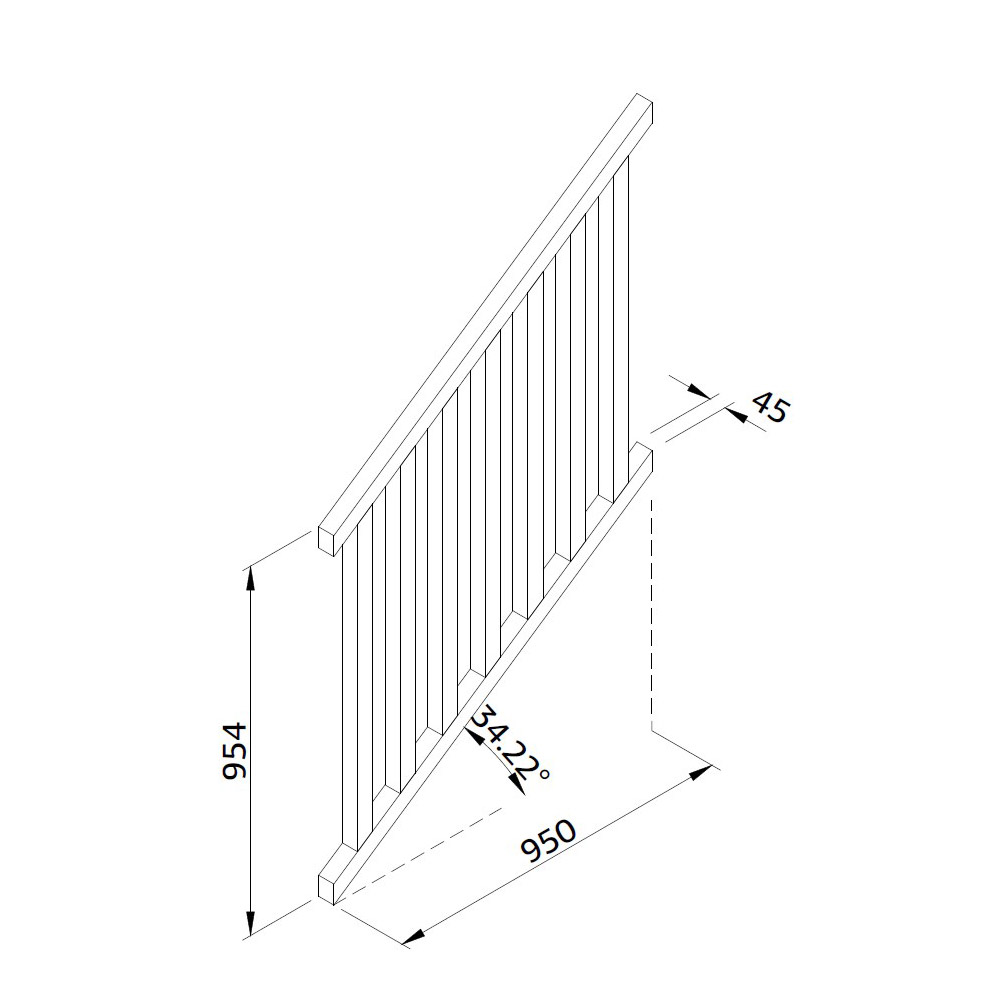 Räcke i Siri-serien anpassat för trappor. Samma design som Siri 11 men med rätt lutning för trygg och enkel montering i trappgången.