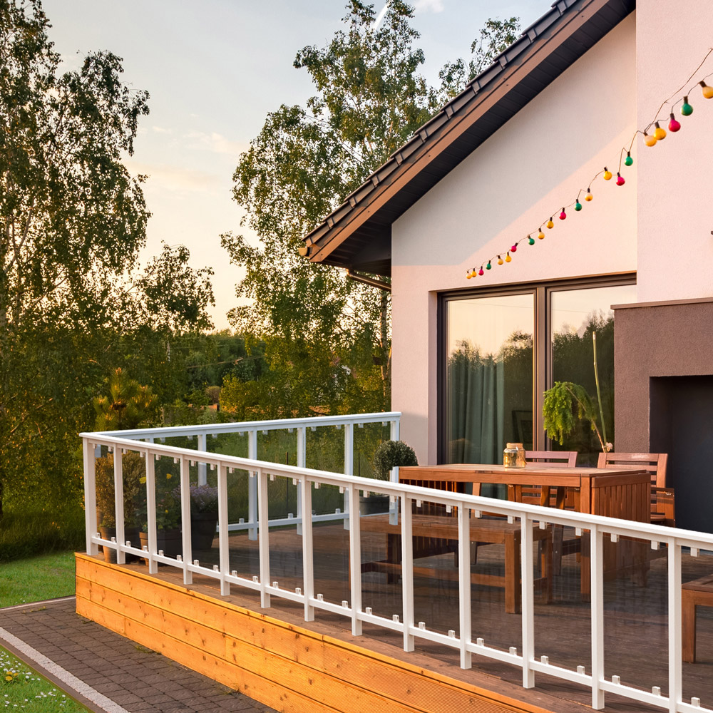Kortare glasräcke i samma stil som Siri 11 Glas. Ger en öppen känsla i mindre höjd, perfekt vid utsiktspunkter eller längs altankanter.