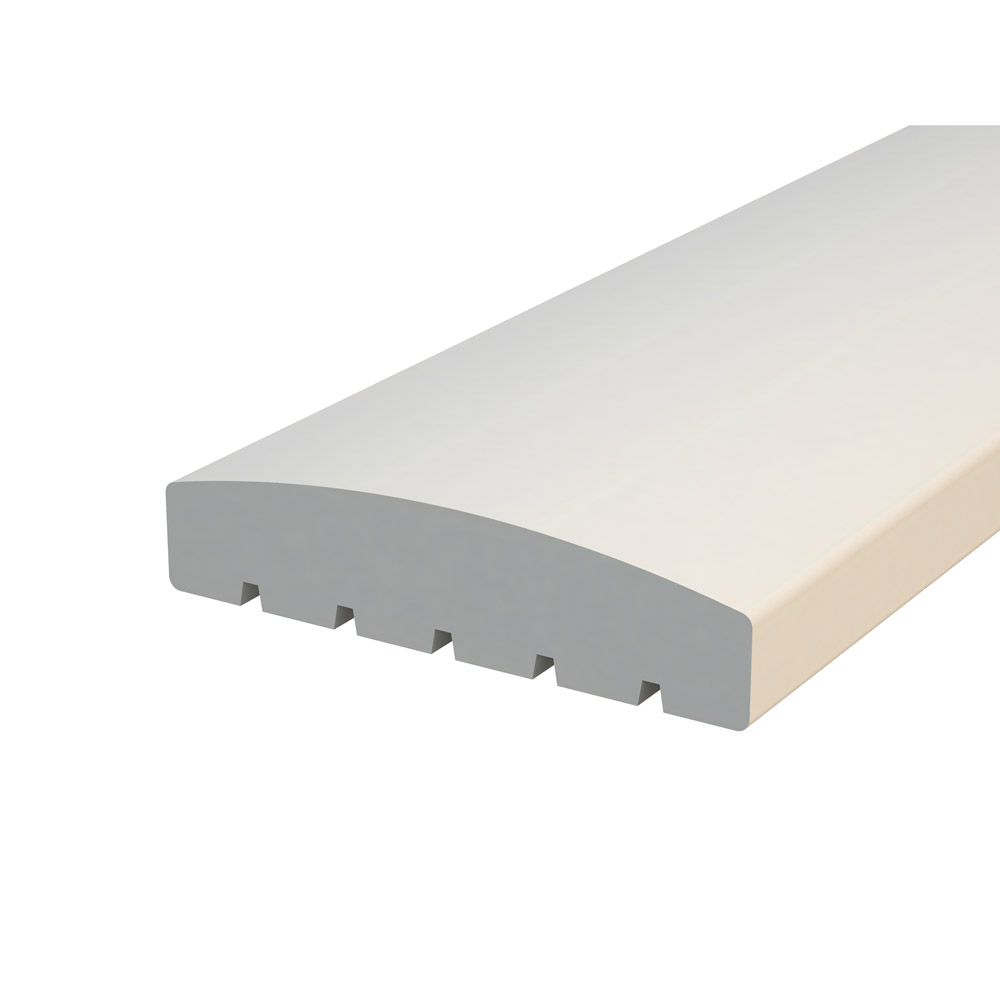 Böjd handledare i nordisk gran som ger ett mjukt och greppvänligt avslut på altanräcket. Den långa längden gör det enkelt att kapa och anpassa efter din konstruktion.