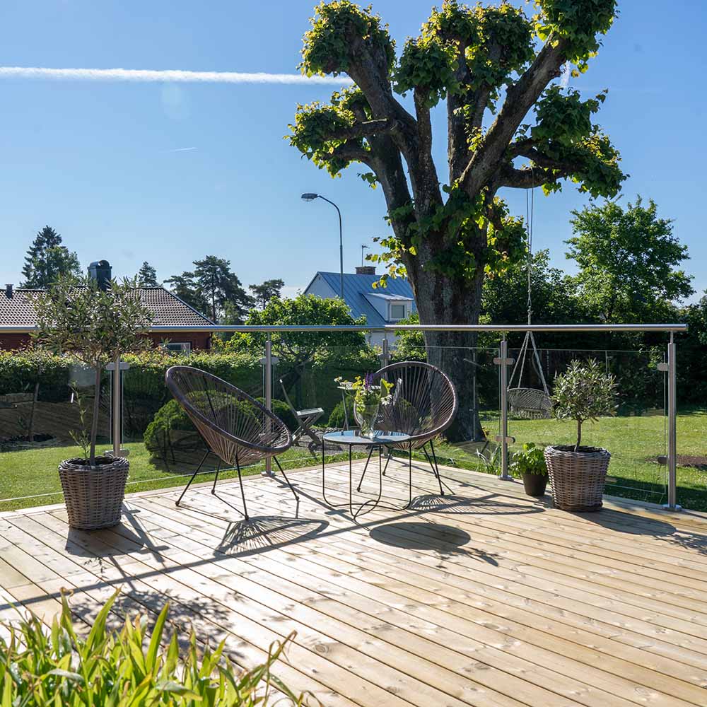 Snyggt och lättmonterat räcke som blir ett vackert tillskott på din uteplats.