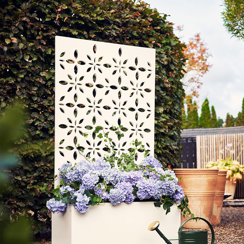 Du kan självklart använda den som en fin detalj eller spalje på en vägg. Bara att skruva i skärmen eller hänga upp den på en krok. Tillför en unik designdetalj i trädgården lika enkelt som 1,2,3.