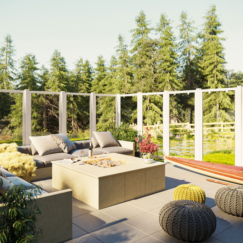 Skärm med klar härdad glasskiva i en stabil träram. Du skärmar av utan att stänga ute ljuset och får en stilren lösning runt altan eller uteplats. Panelen passar både som fristående inslag eller som del i ett större skärmsystem.