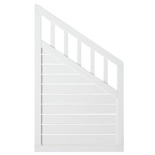 Vitmålad skärm som gör att uteplatsen får en ljus och fräsch känsla.