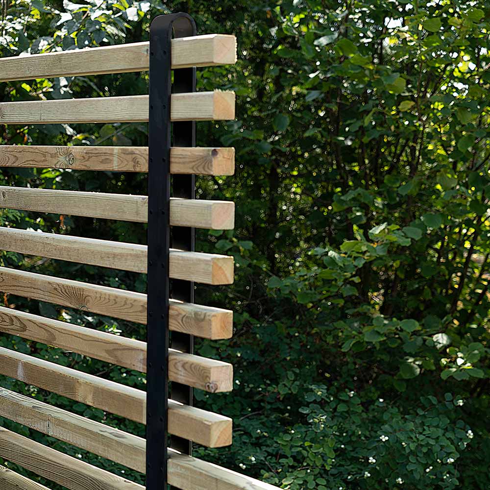 Perfekt staket att rama in din trädgård eller uteplats med. Stolparna förankras i träet med hjälp av skruv. Stolpen har förborrade hål och träskruv medföljer för att fästa träreglarna du valt. Skruv för montering av reglar medföljer.