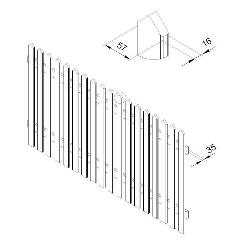 Staket i nordisk gran med klassisk profil. Grön tryckimpregnering ger lång hållbarhet och minimalt underhåll.