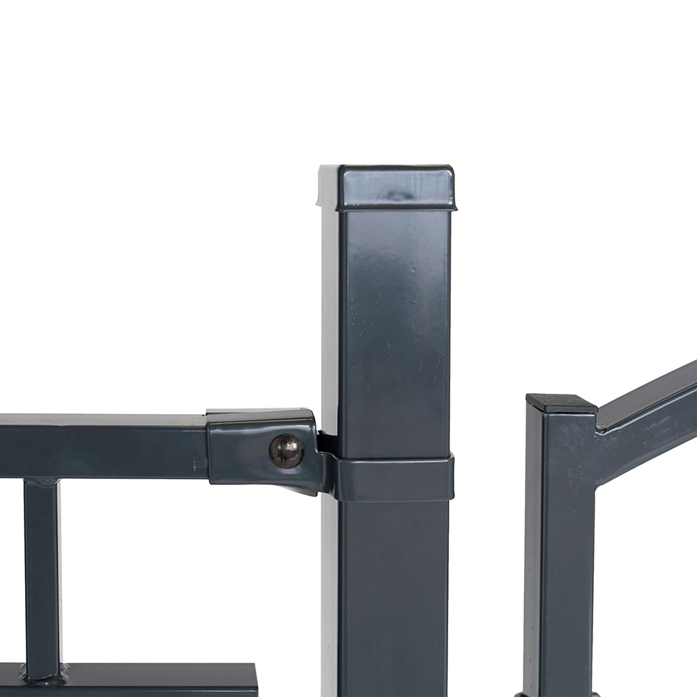 Detta fäste är på grund av dess materialval underhållsfritt och mycket tåligt mot slitage och yttre påfrestningar. Den förgalvaniserade stålen har pulverlackats i en stilren antracitgrå kulör.