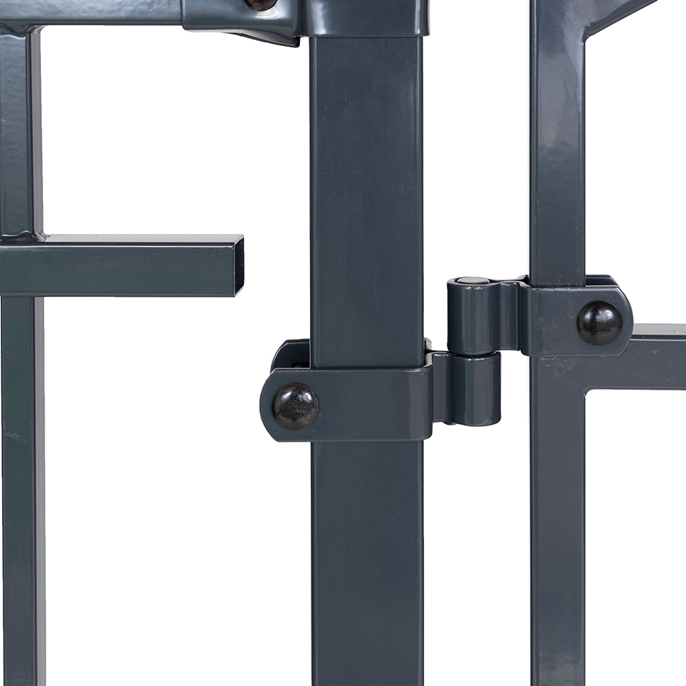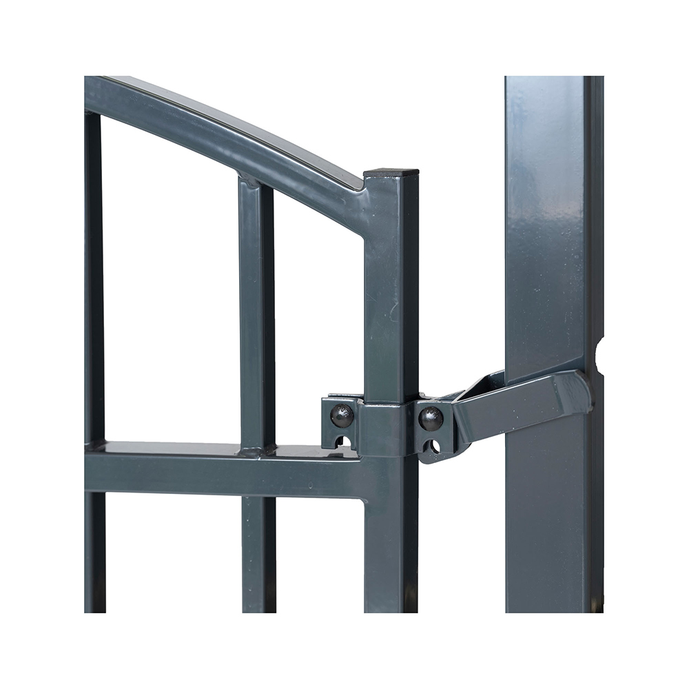 Detta grindlås är på grund av dess materialval underhållsfritt och mycket tåligt mot slitage och yttre påfrestningar. Den förgalvaniserade stålen har pulverlackats i en stilren antracitgrå kulör.