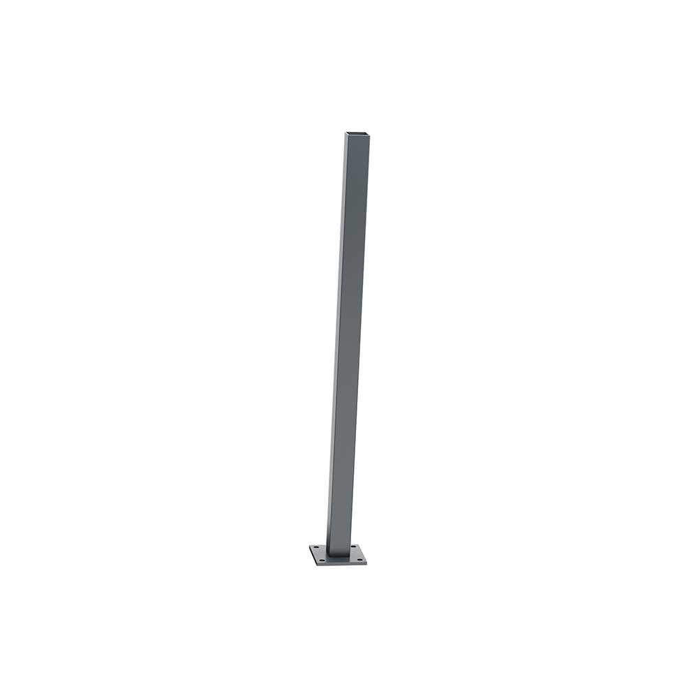 Denna stolpe är på grund av dess materialval underhållsfritt och mycket tåligt mot slitage och yttre påfrestningar. Den förgalvaniserade stålen har pulverlackats i en stilren antracitgrå kulör.